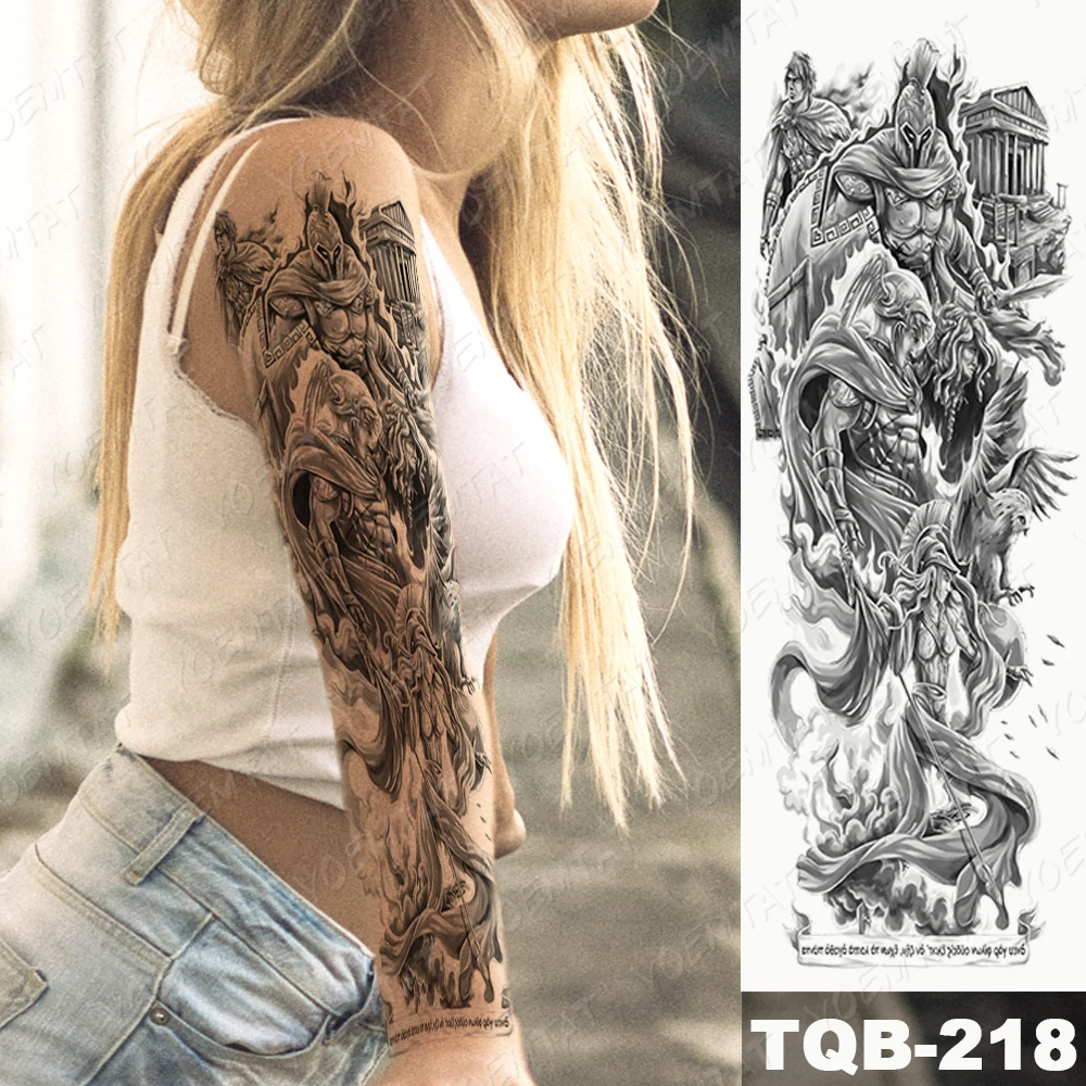Large Arm Sleeve Tattoo Angel Halo Roman Soldier Waterproof Temporary Tatto Sticker Soldier Owl War Body Art Full Fake Tatoo Men Temporary Tattoos Aliexpress
